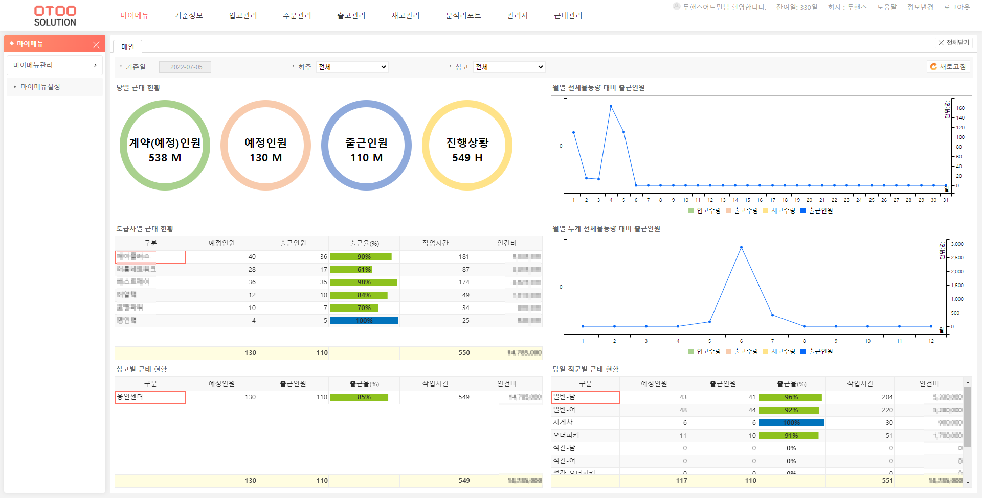 OTOO SOLUTION 모듈 중 하나인 근태관리를 적용했습니다.
